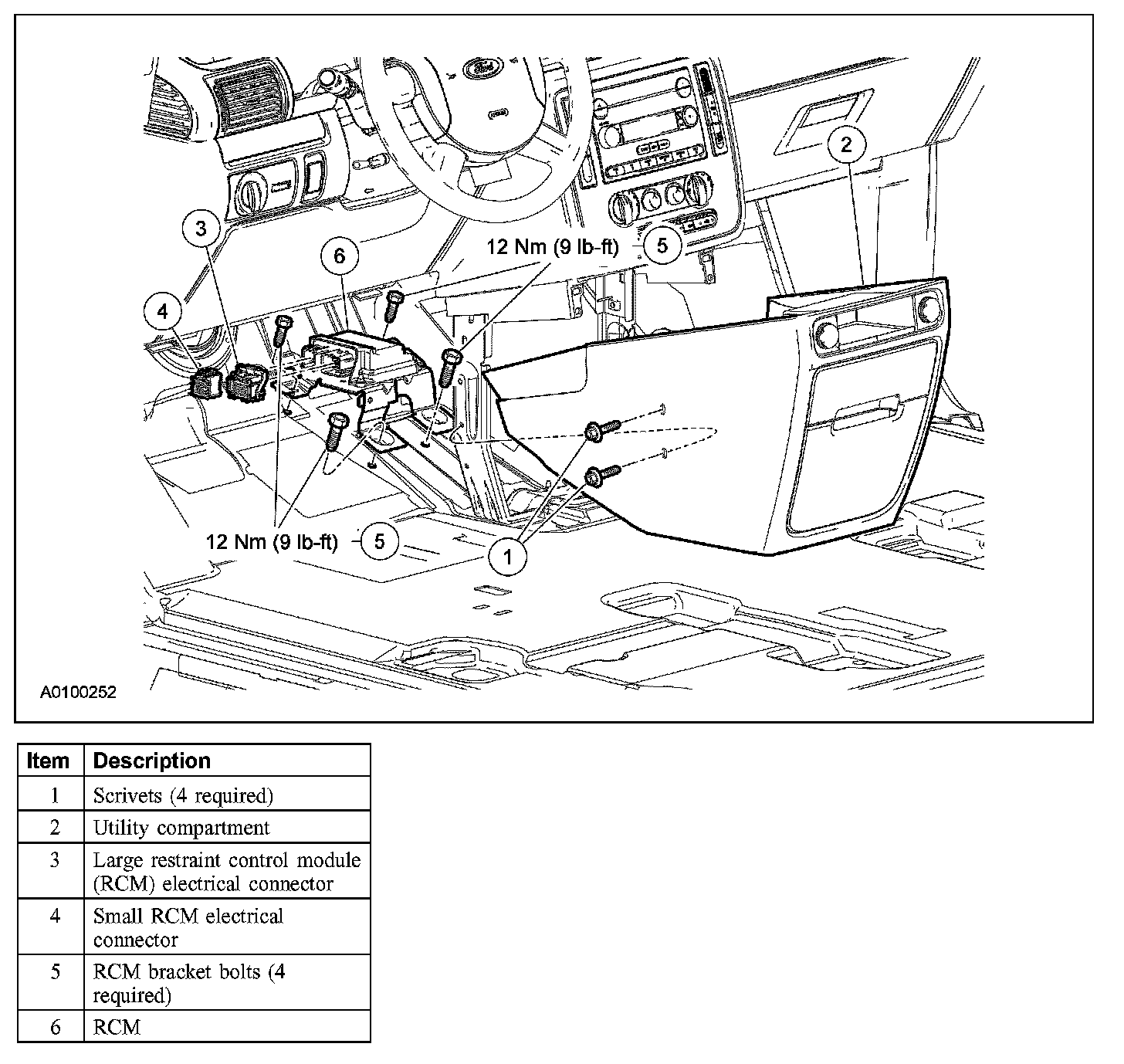 - When installing a new restraints control module (RCM), always make sure the correct RCM is being installed. If an incorrect RCM is installed, erroneous DTCs will result.