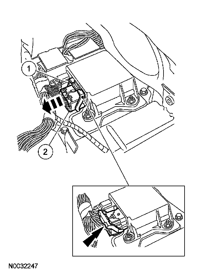 - Do not handle, move or change the original horizontal mounting position of the restraints control module (RCM) while the RCM is connected and the ignition switch is ON. Failure to follow these instructions may result in the inadvertent deployment of the safety canopy and risk of personal injury.