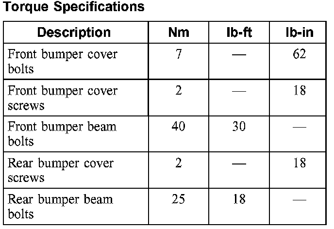 Torque Specifications: