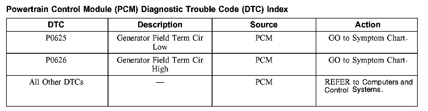 Powertrain Control Module (PCM) Diagnostic Trouble Code (DTC) Index