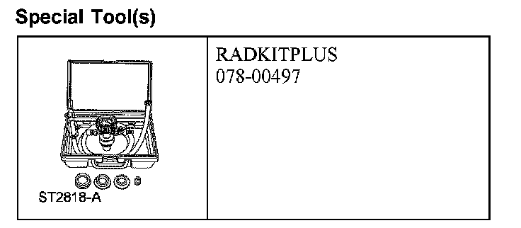 1. Using the special tool, install the RADKITPLUS and follow the RADKITPLUS manufacturer's instructions to fill and bleed the cooling system.