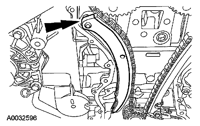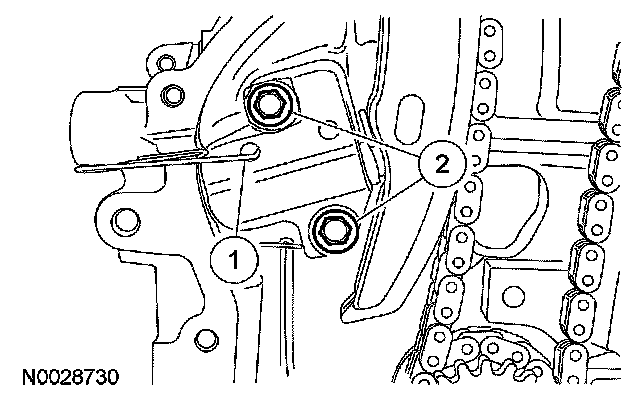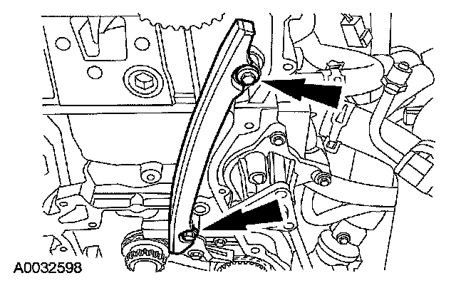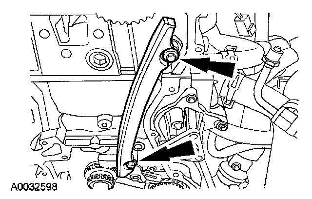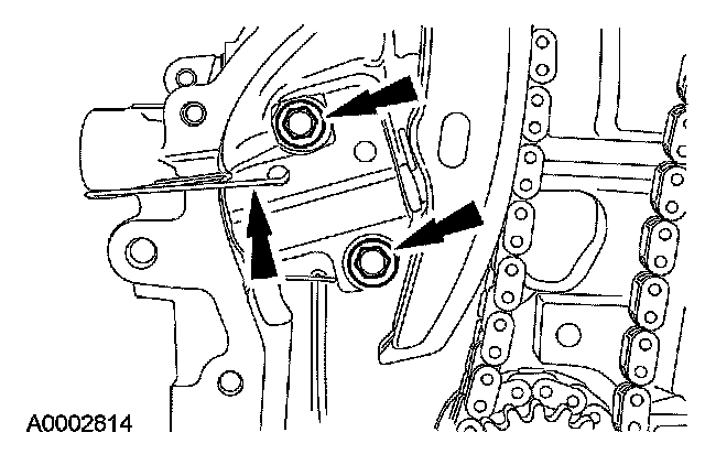 6. Remove the bolts and the LH timing chain guide.