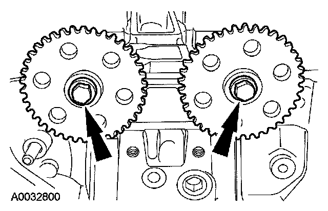 1. Install the camshaft sprockets and the bolts. Do not tighten the bolts at this time.