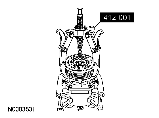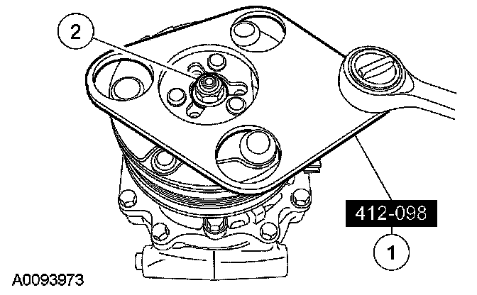 4. CAUTION: Do not use air tools. Damage to the A/C clutch pulley or A/C compressor may result.
