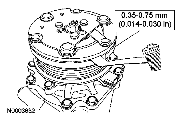 10. Measure and adjust the clutch air gap by removing or adding A/C clutch disc and hub spacers.