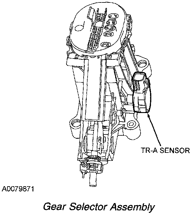 The TR sensor communicates the gear selector position that the driver selects to the PCM. The PCM determines a gear mode based on the TR input and the vehicle speed signal. The PCM then broadcasts a gear mode message over the communication link. The TCM uses the gear mode message to engage the transaxle in the gear that the driver selected. The other control modules use the gear mode message to control the rear lamps or a brake shift interlock solenoid. The TR sensor is mounted at the base of the gear selector assembly and the sensor shaft is moved by the selector.