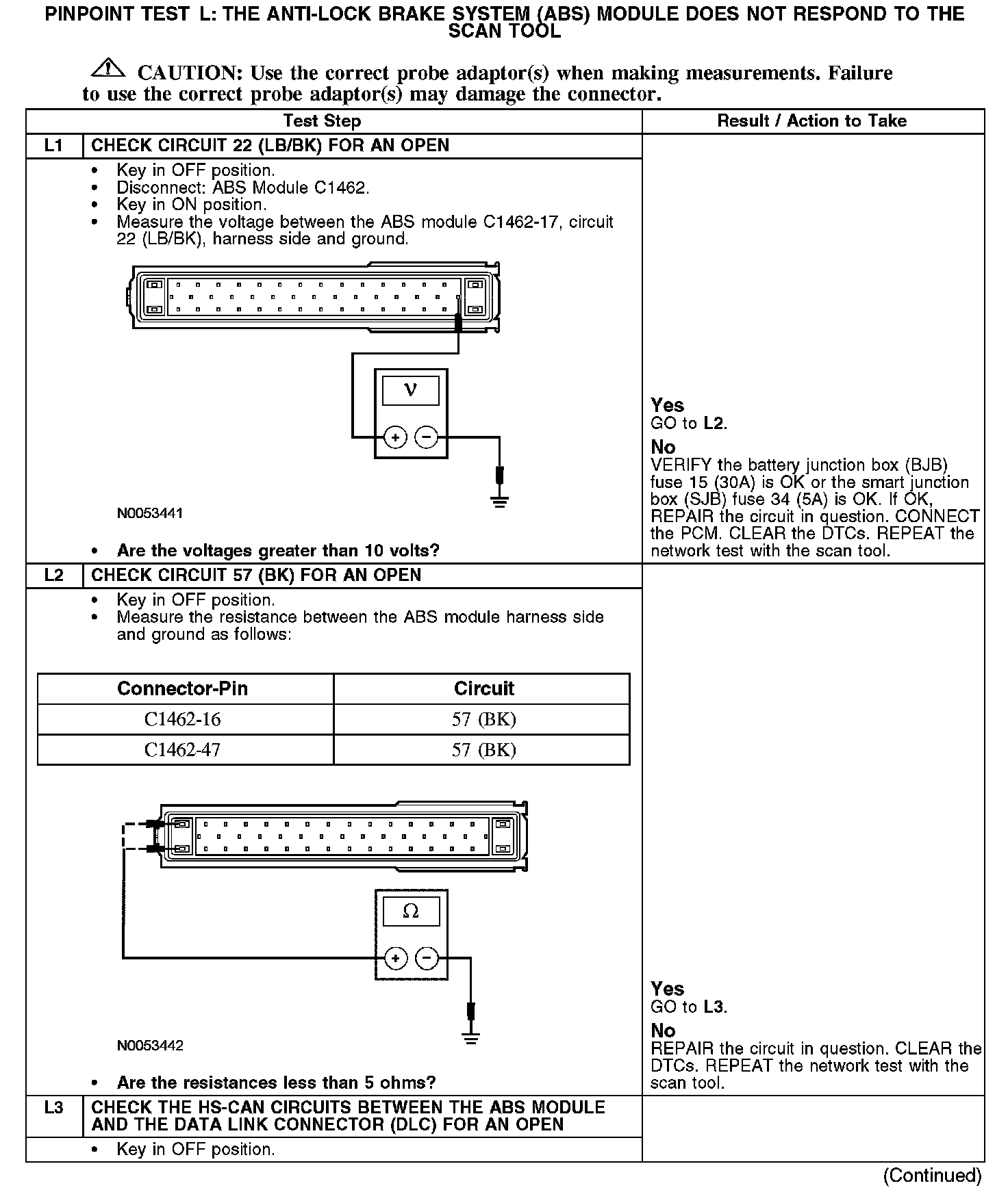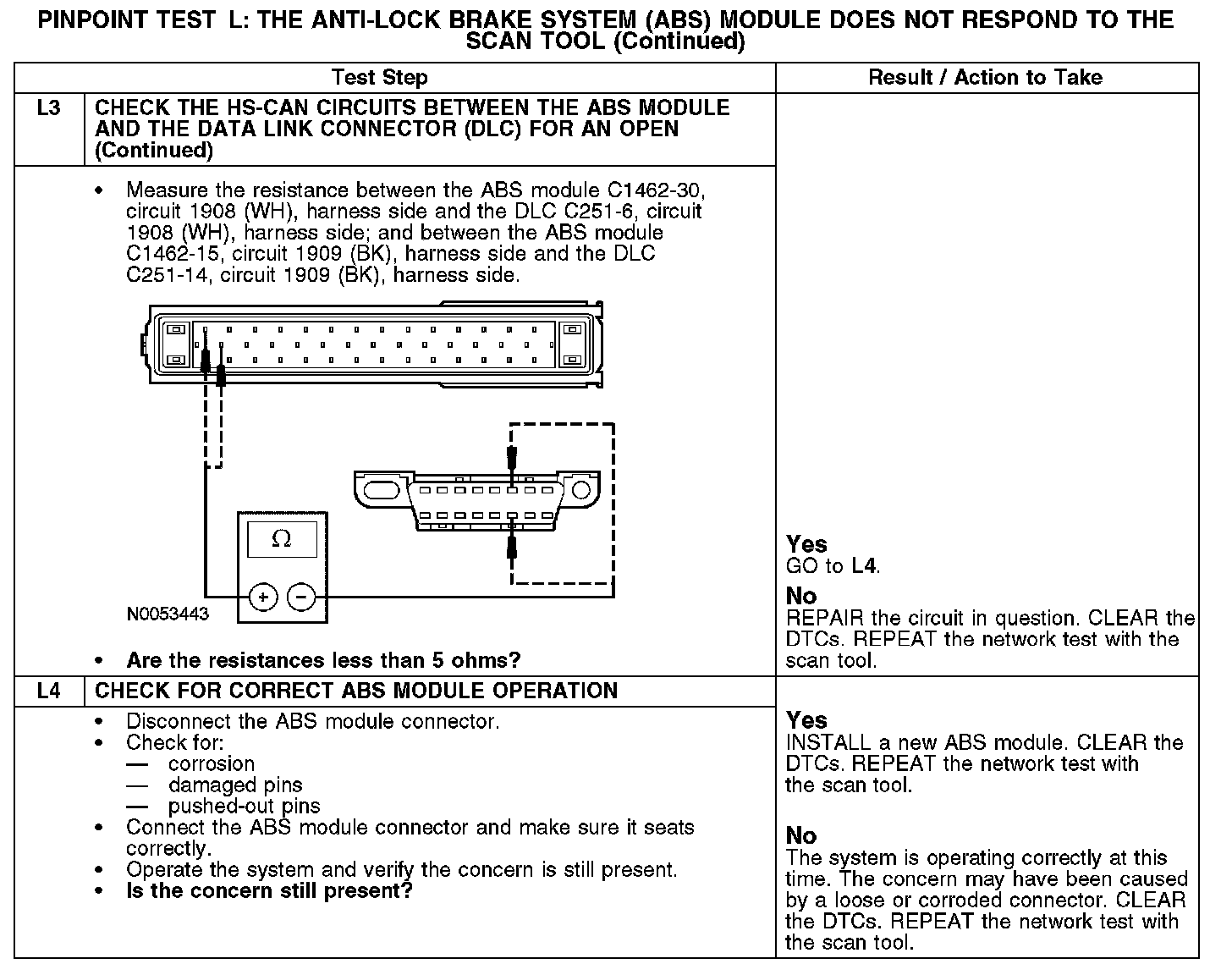PINPOINT TEST L: THE ANTI-LOCK BRAKE SYSTEM (ABS) MODULE DOES NOT RESPOND TO THE SCAN TOOLL1-L3: