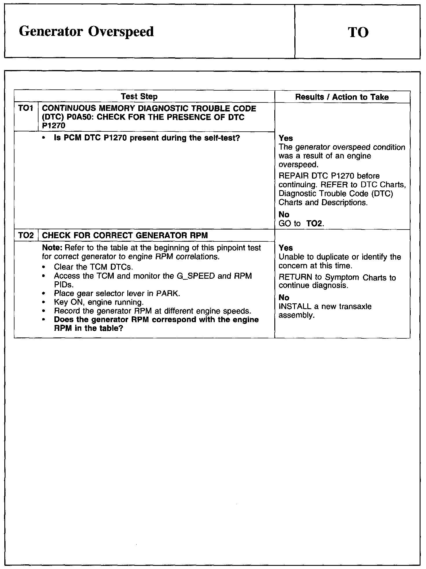 PINPOINT TEST TO: GENERATOR OVERSPEED
