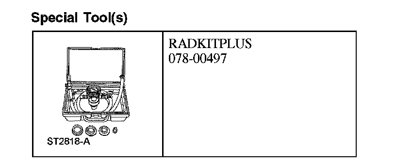 1. Using the special tool, install the RADKITPLUS and follow the manufacturer's instructions to fill and bleed the cooling system.
