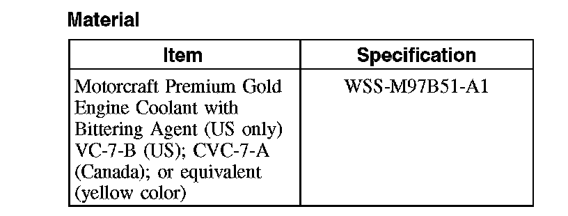 ^ Vehicle cooling systems are filled with Motorcraft Premium Gold Engine Coolant. Always fill the cooling system with the same coolant that is present in the system. Do not mix coolant types.