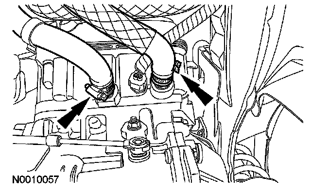 5. Loosen the hose clamps at the transaxle, then pull the hoses off to allow the coolant to drain.