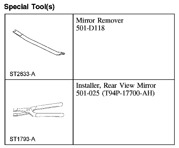 INTERIOR REAR VIEW MIRRORSpecial Tool(S):