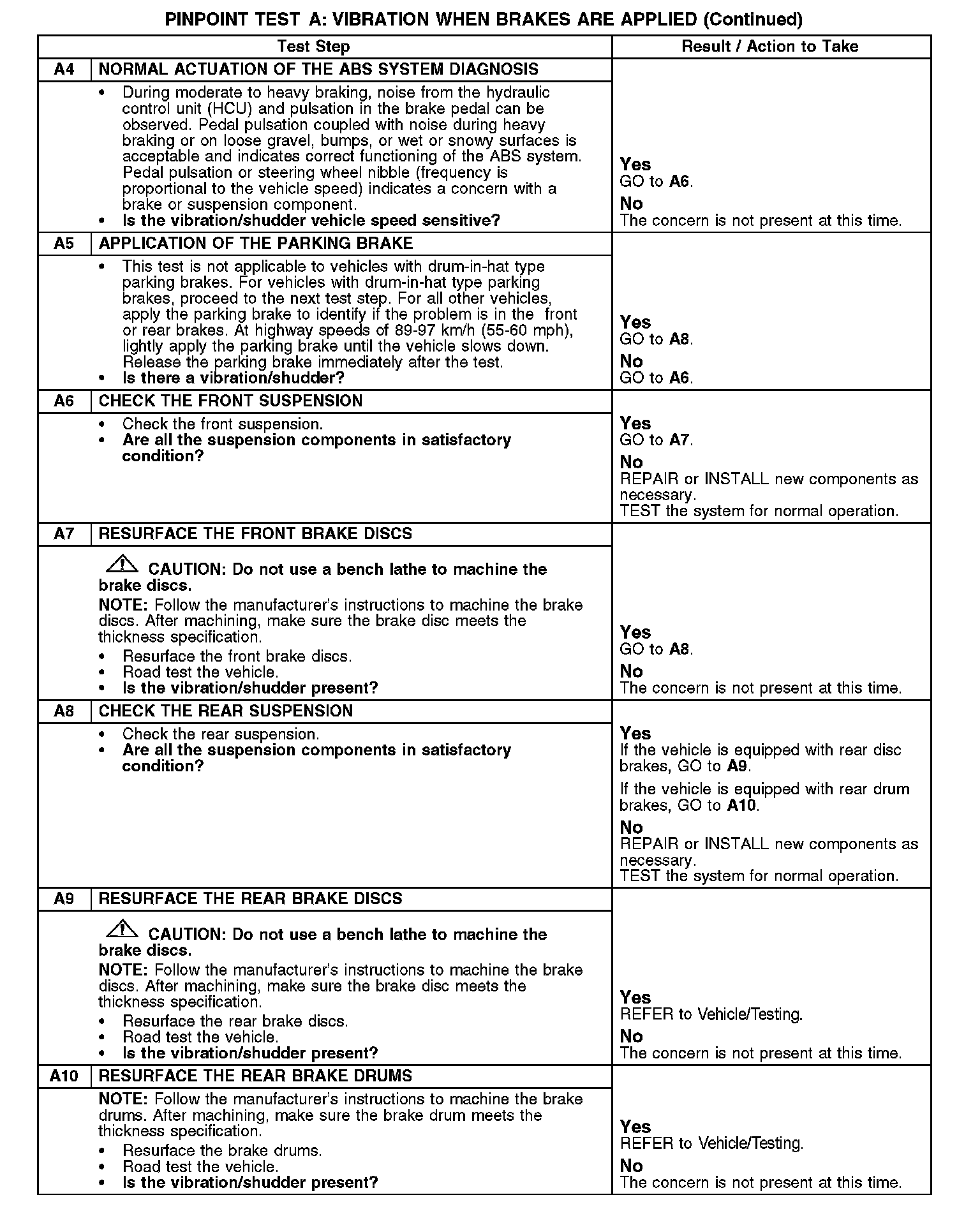 PINPOINT TEST A: VIBRATION WHEN BRAKES ARE APPLIEDNormal Operation