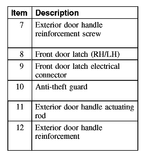FRONT DOOR HANDLES, LOCKS AND LATCHES - EXPLODED VIEW