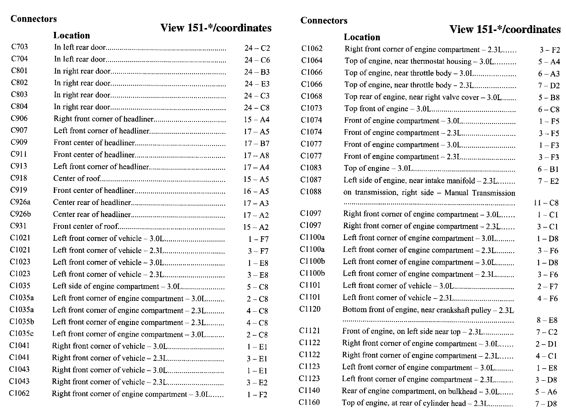 PLEASE NOTE: If a link on the Connector Location Index to a View is not provided, that means that the Connector and/or View in question does NOT apply to the vehicle model selected.