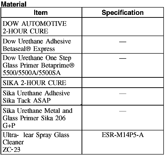 - Be sure to use the same brand and cure-rate products for the adhesive and primer. Do not mix different brands of urethane and primer. Refer to the Material Chart in this procedure.