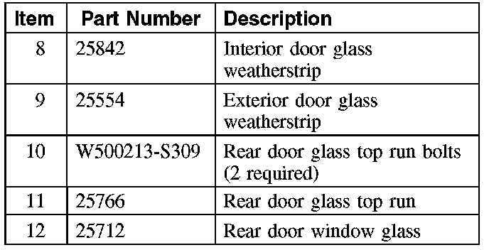 8. Support the rear door window glass in the full up position.