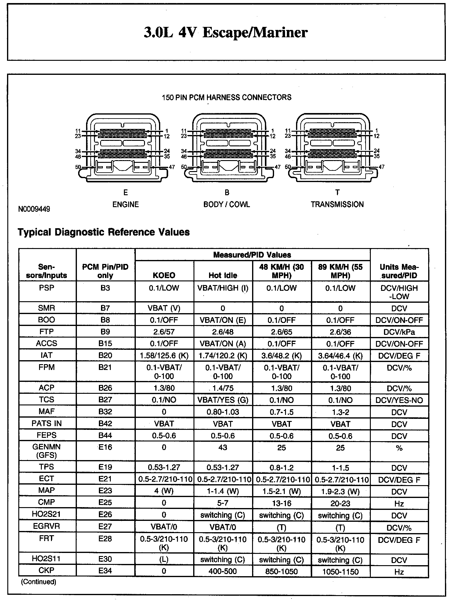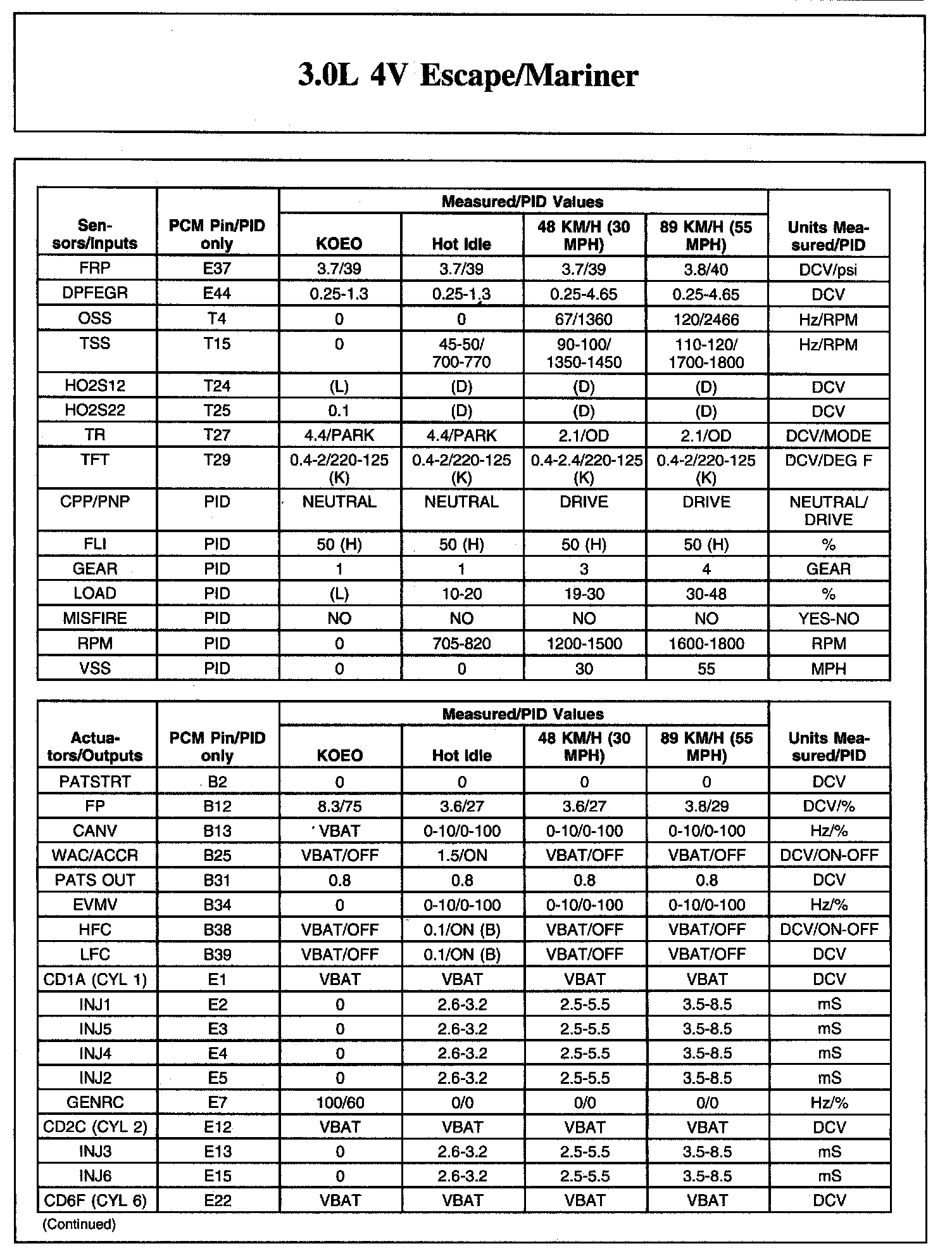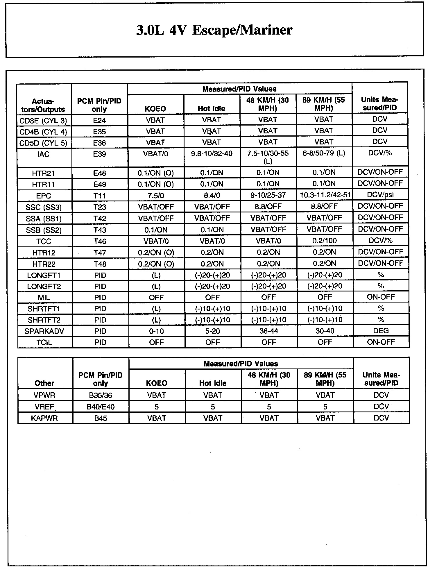 The Typical Diagnostic Reference Value Charts do not display fault parameter identifications (PIDs). These are PIDs which indicate a hard fault with the circuit. They display a value of YES or NO and are PIDs ending with the letter F.