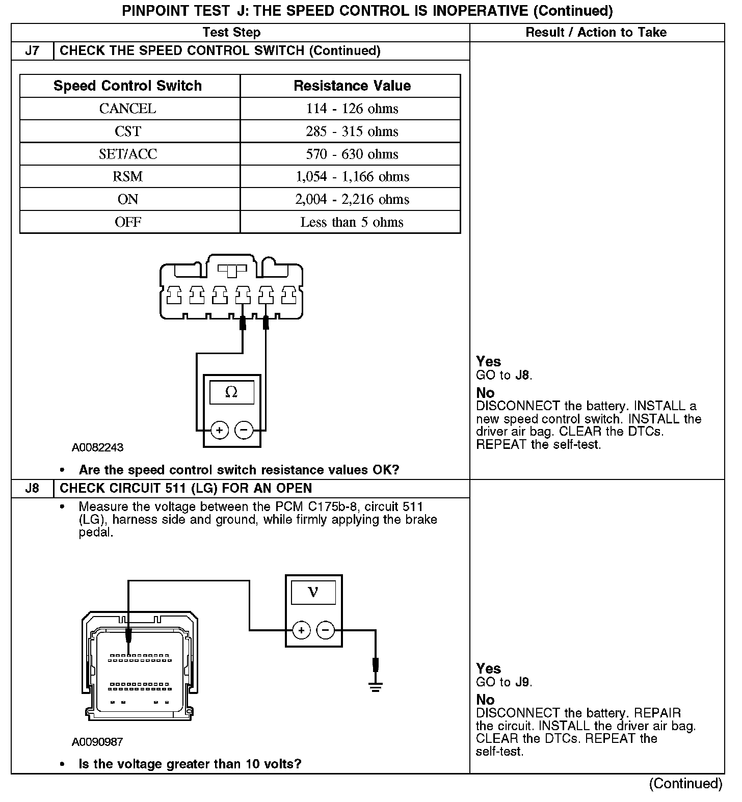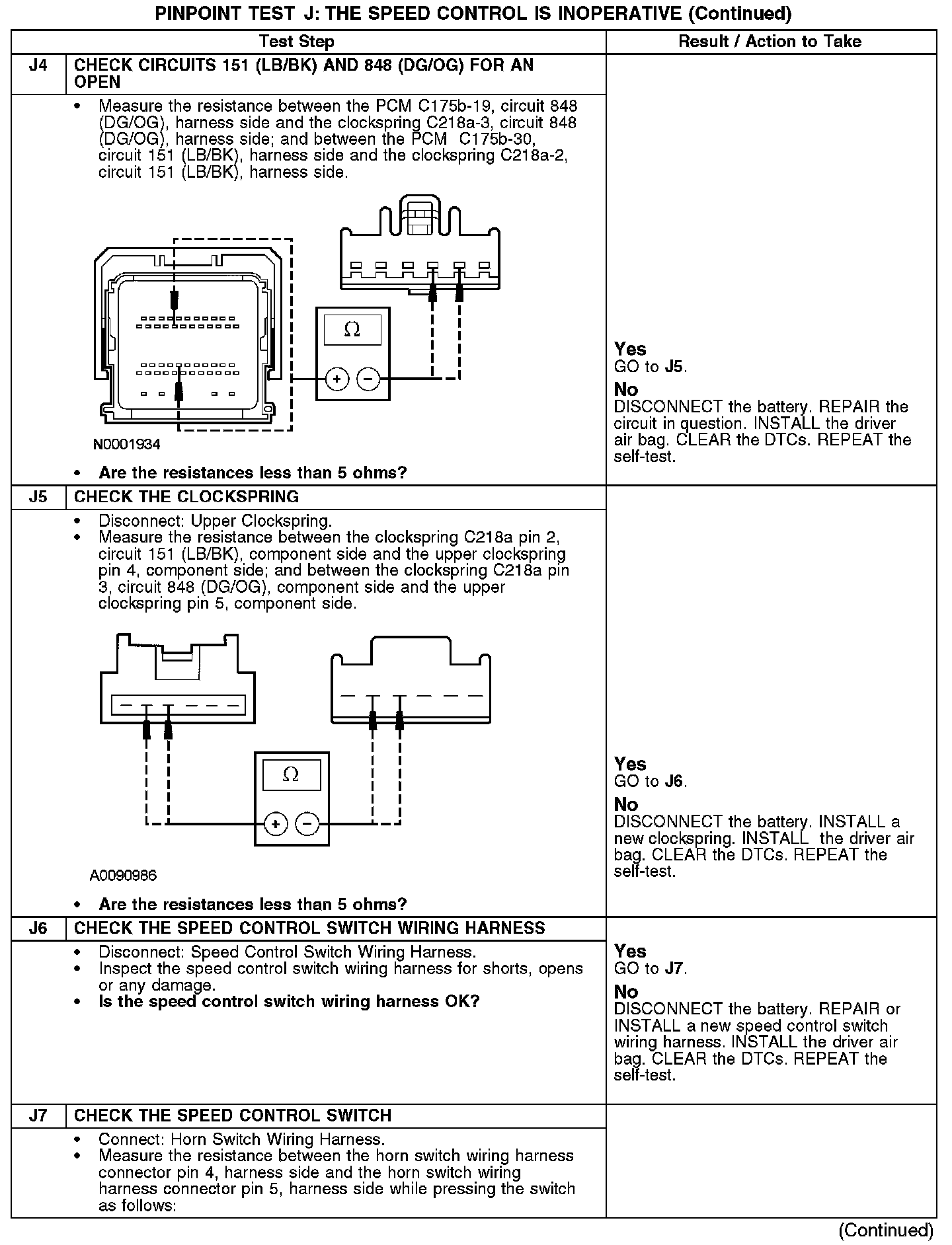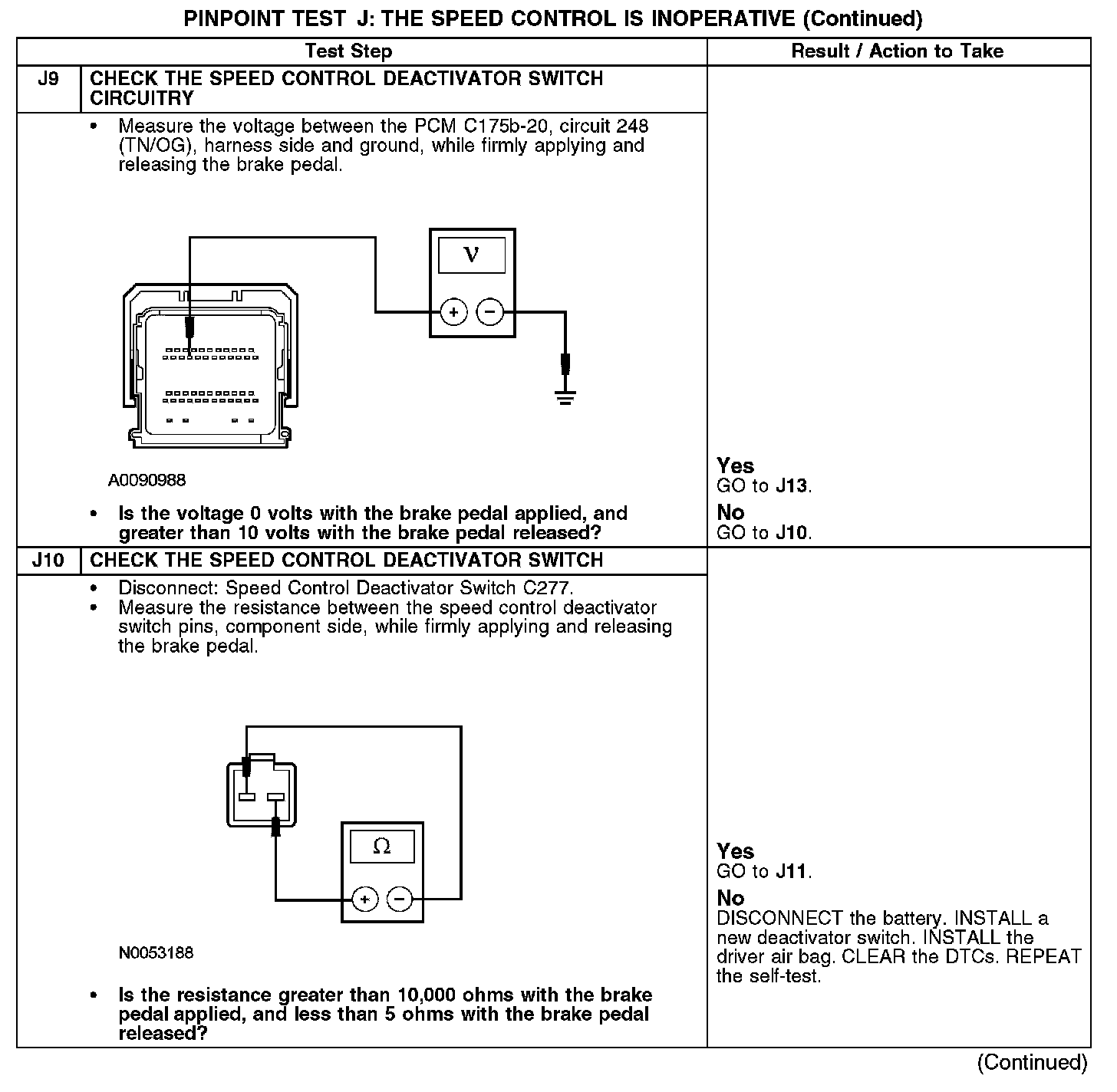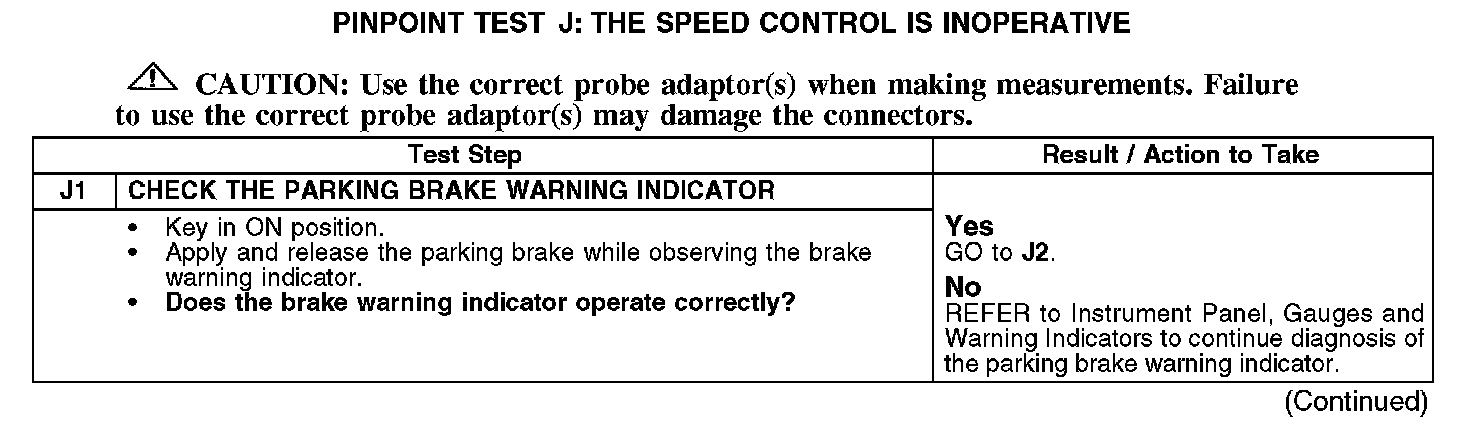 PINPOINT TEST J: THE SPEED CONTROL IS INOPERATIVEJ1: