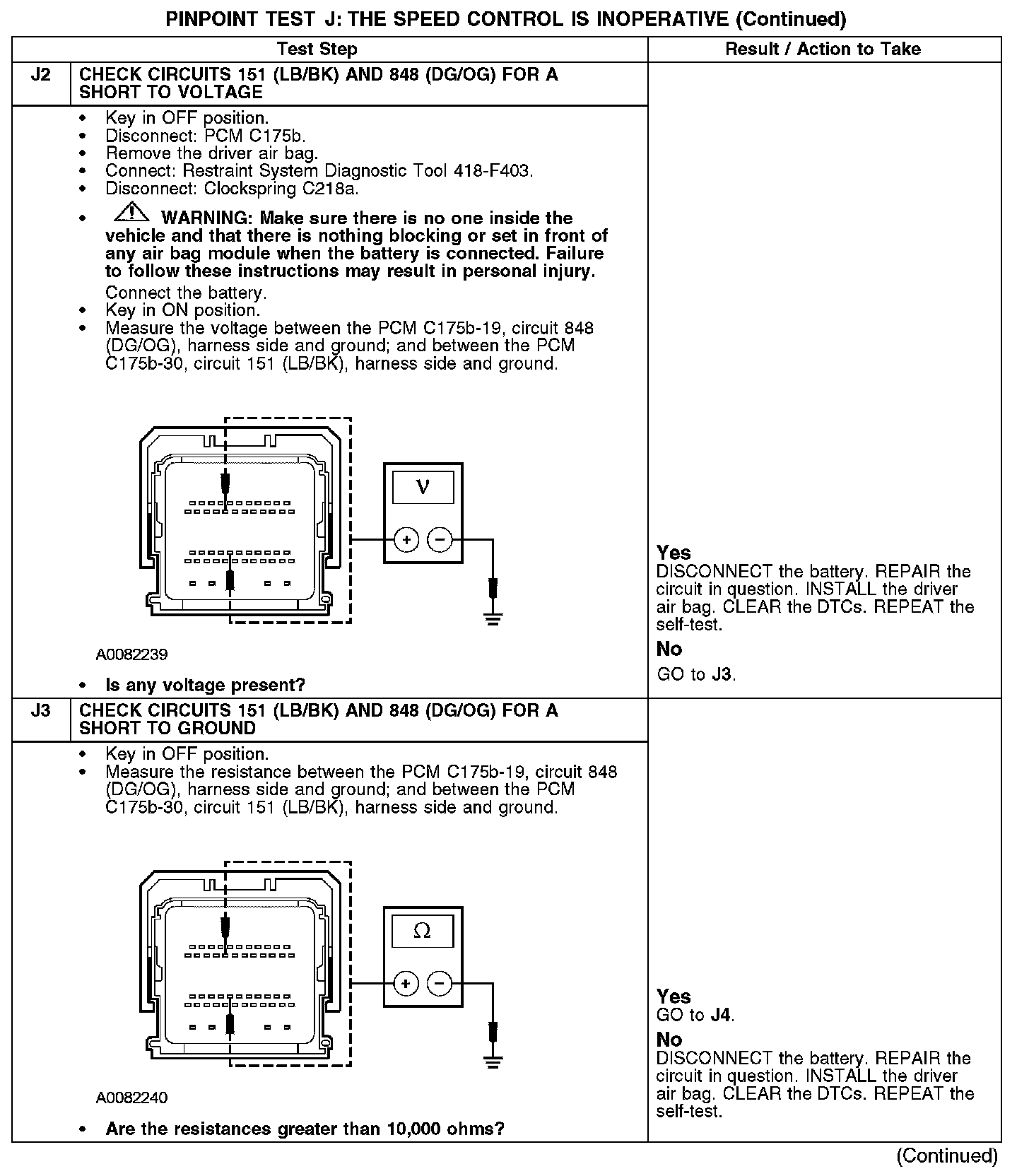 - Circuit 848 (DG/OG) open, short to ground or voltage