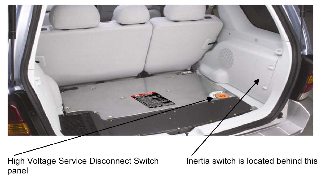 - The High Voltage battery is located in the rear of the vehicle underneath the carpet.