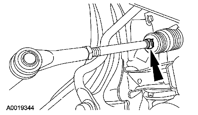7. CAUTION: Hold the tie-rod end stationary with a wrench while tightening the nut, or damage to the boot can occur.