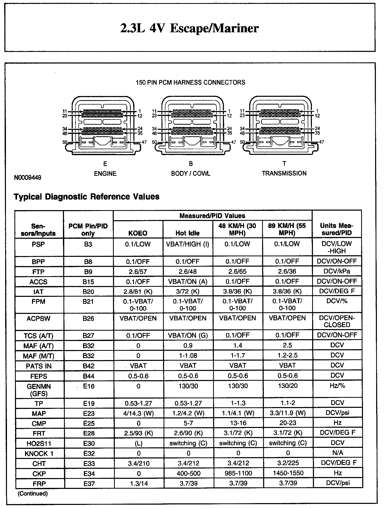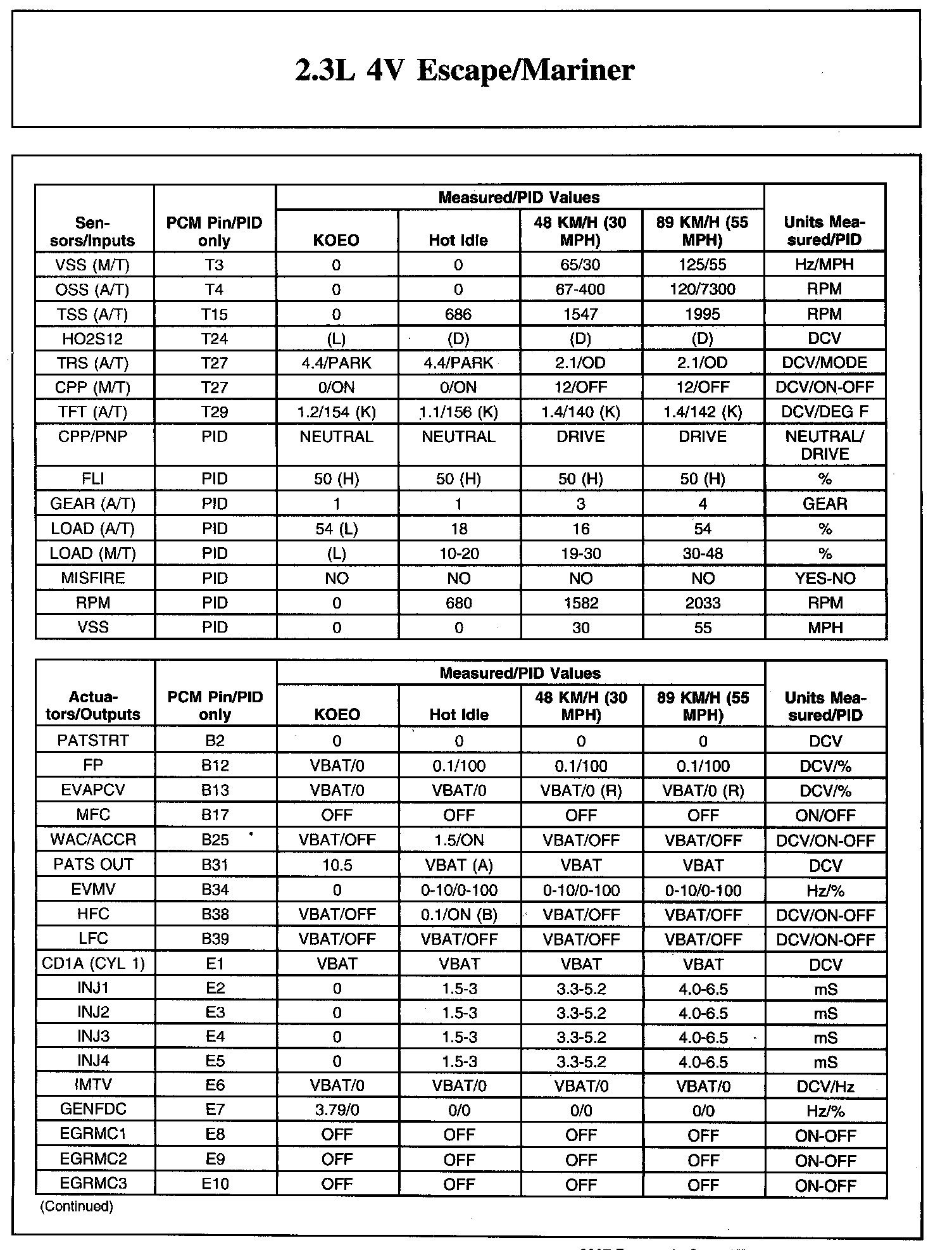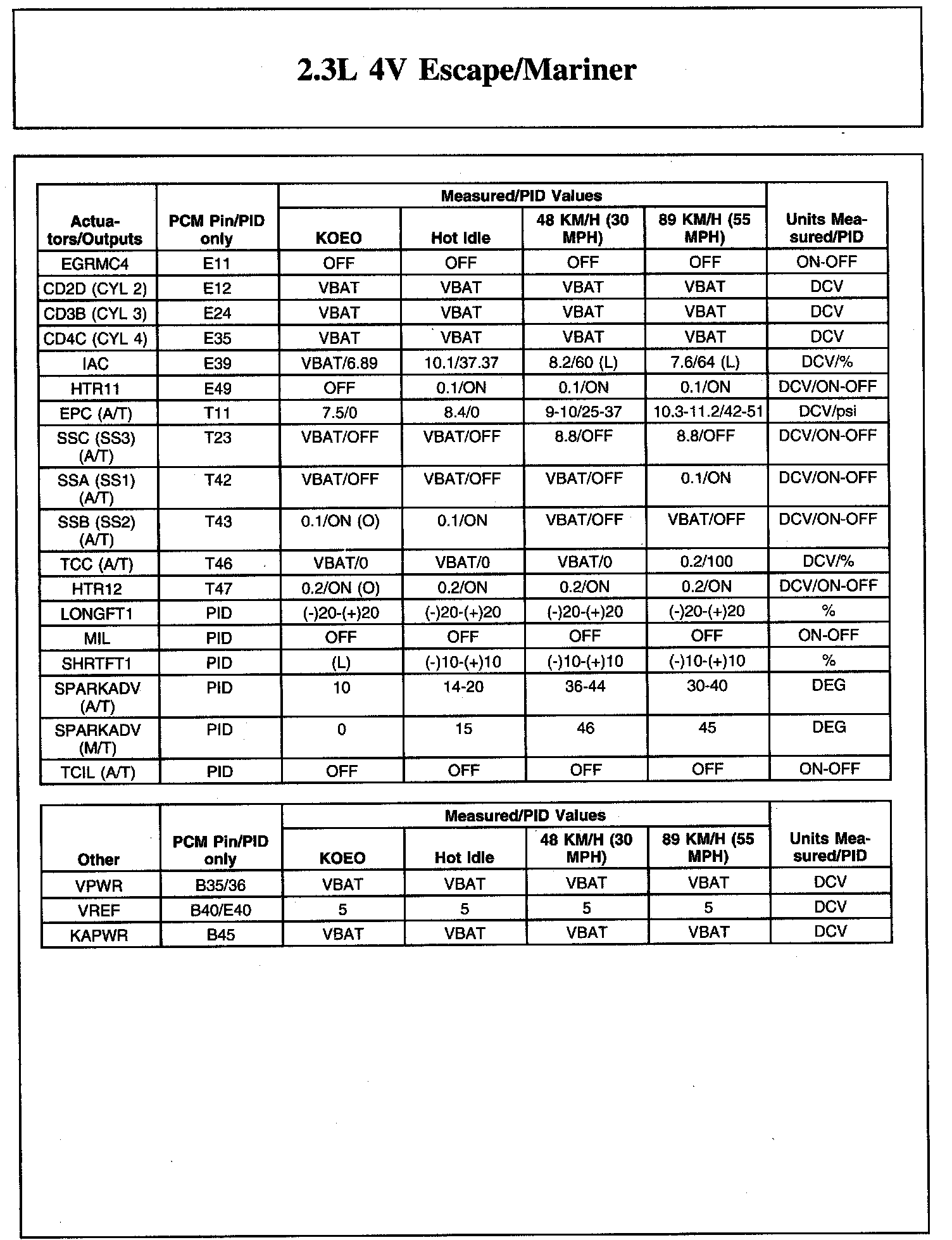 The Typical Diagnostic Reference Value Charts do not display fault parameter identifications (PIDs). These are PIDs which indicate a hard fault with the circuit. They display a value of YES or NO and are PIDs ending with the letter F.