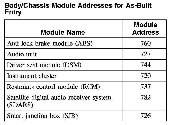 As-Built data is a VIN specific module configuration record. During vehicle build, the configuration from all modules is downloaded and stored in the As-Built database. As Built data will not reflect customer preference items that have been changed from the default state. These items will need to be changed using programmable parameters after the module is configured.