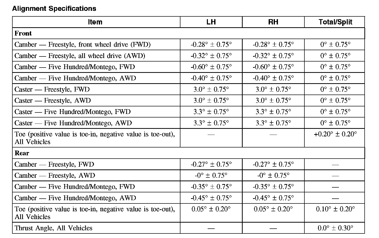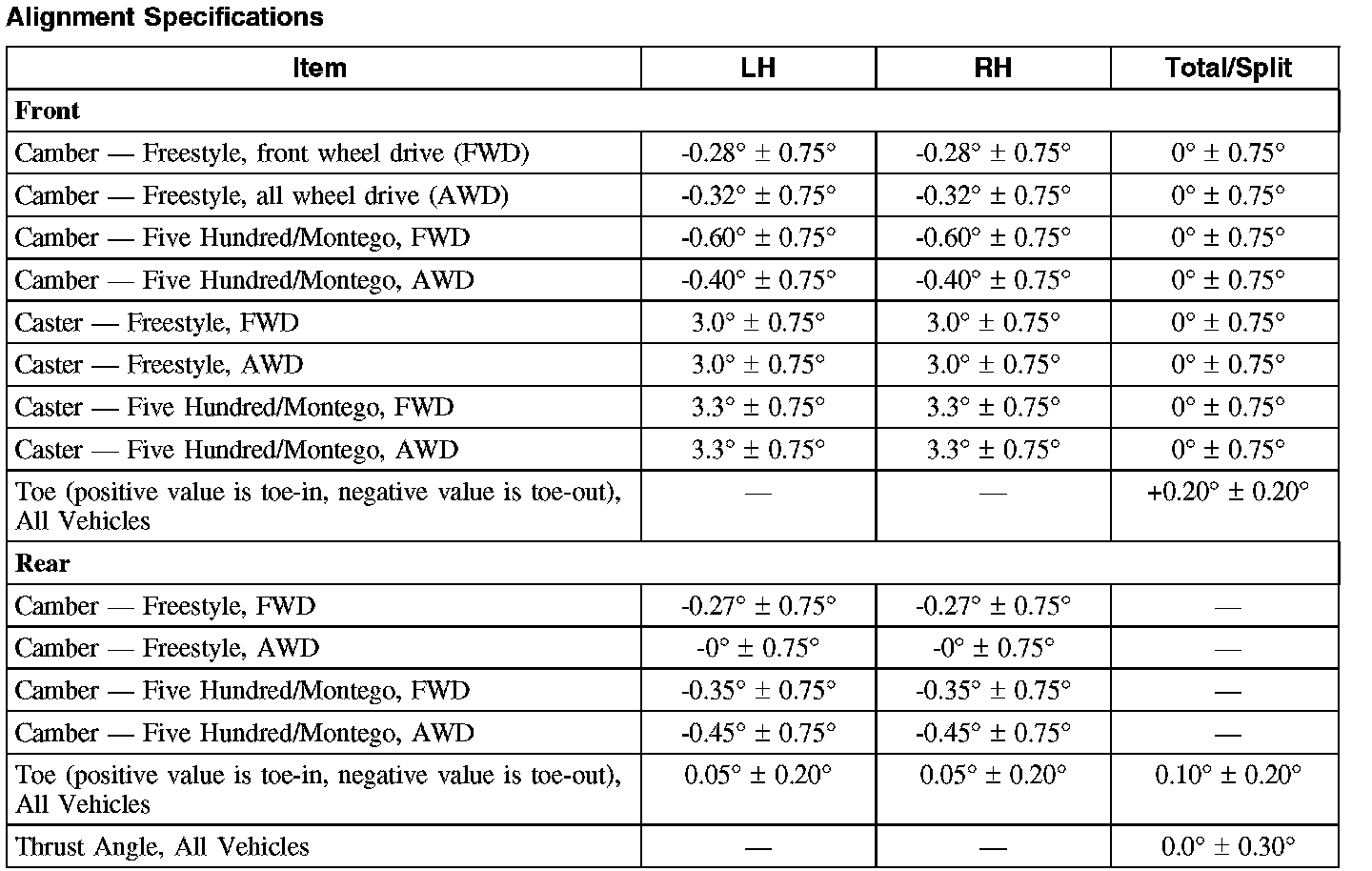 Montego 2WD V6-3.0L VIN 1