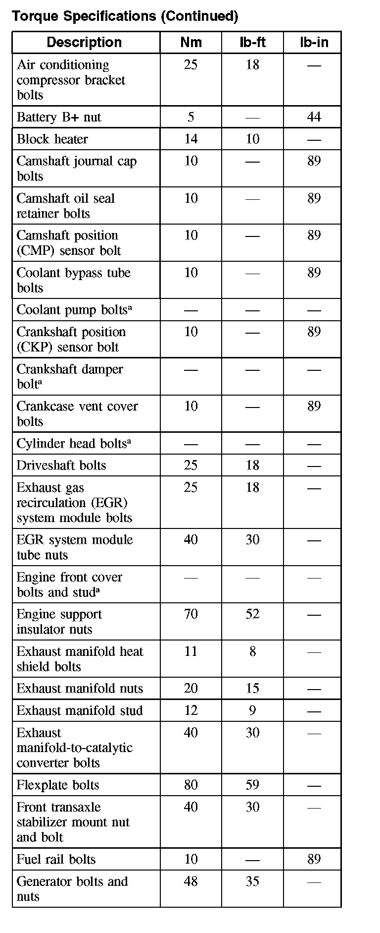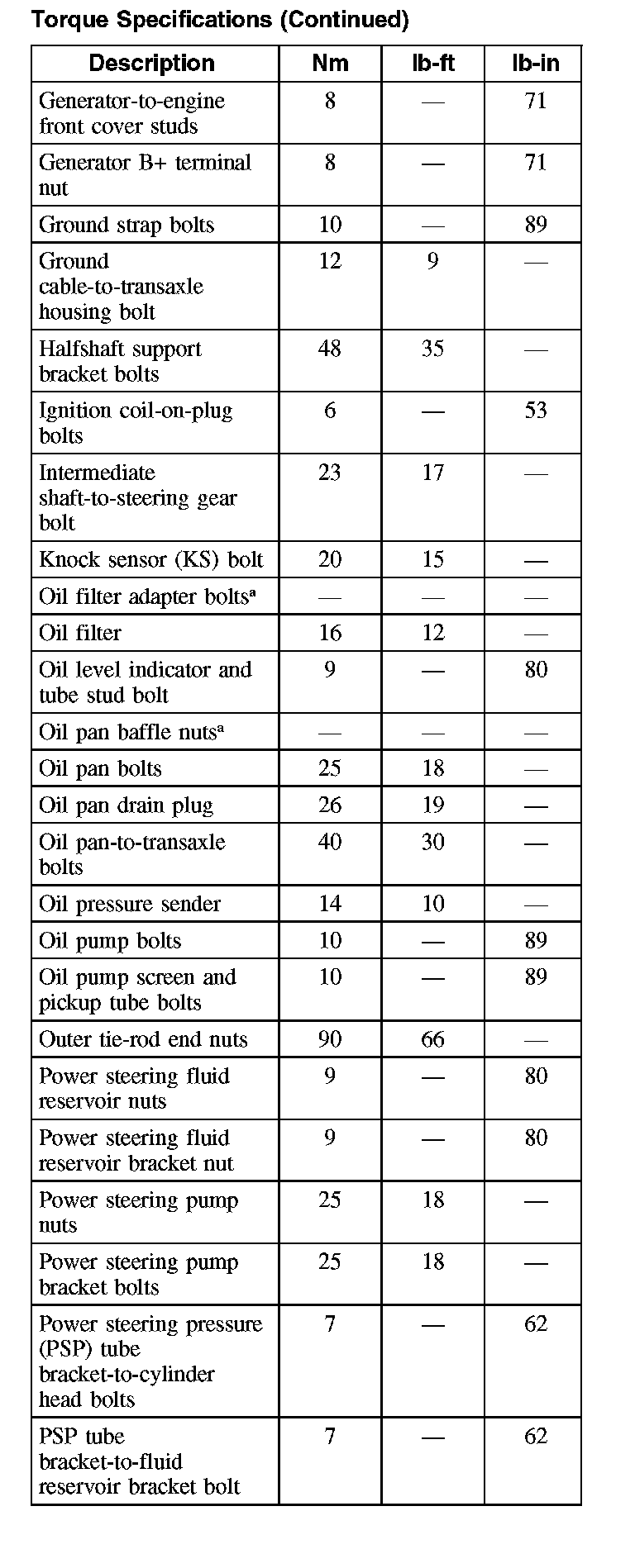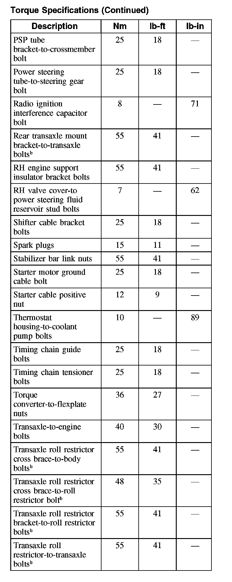 Torque Specifications: