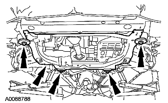 12. Using a suitable powertrain lift, position the subframe in place and install the 4 bolts.