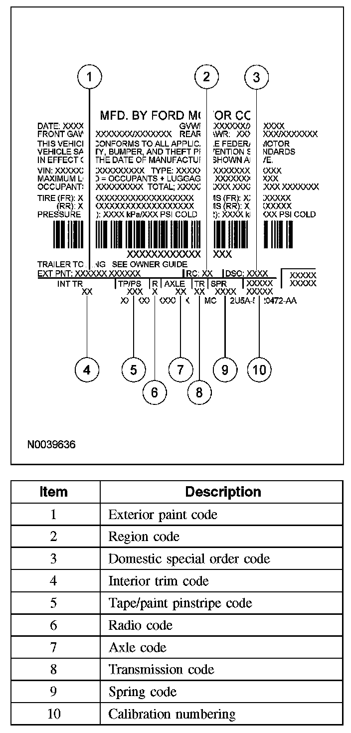 The vehicle certification (VC) label contains the manufacturer name, the month and year of manufacture, the certification statement and the VIN. It also includes gross vehicle weight ratings (GVWR).