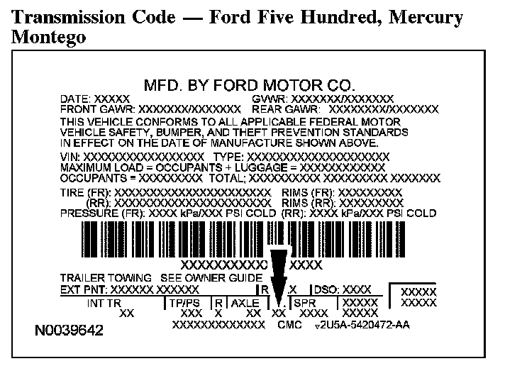Transmission Code - Ford Five Hundred, Mercury Montego: