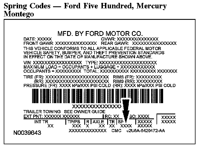 Spring Codes - Ford Five Hundred, Mercury Montego: