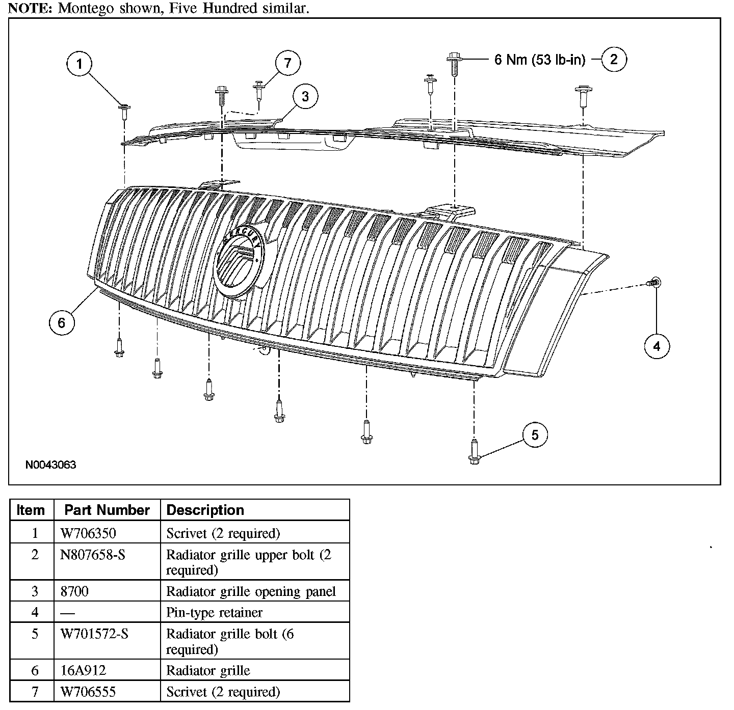 RADIATOR GRILLE-FIVE HUNDRED, MONTEGORemoval and Installation