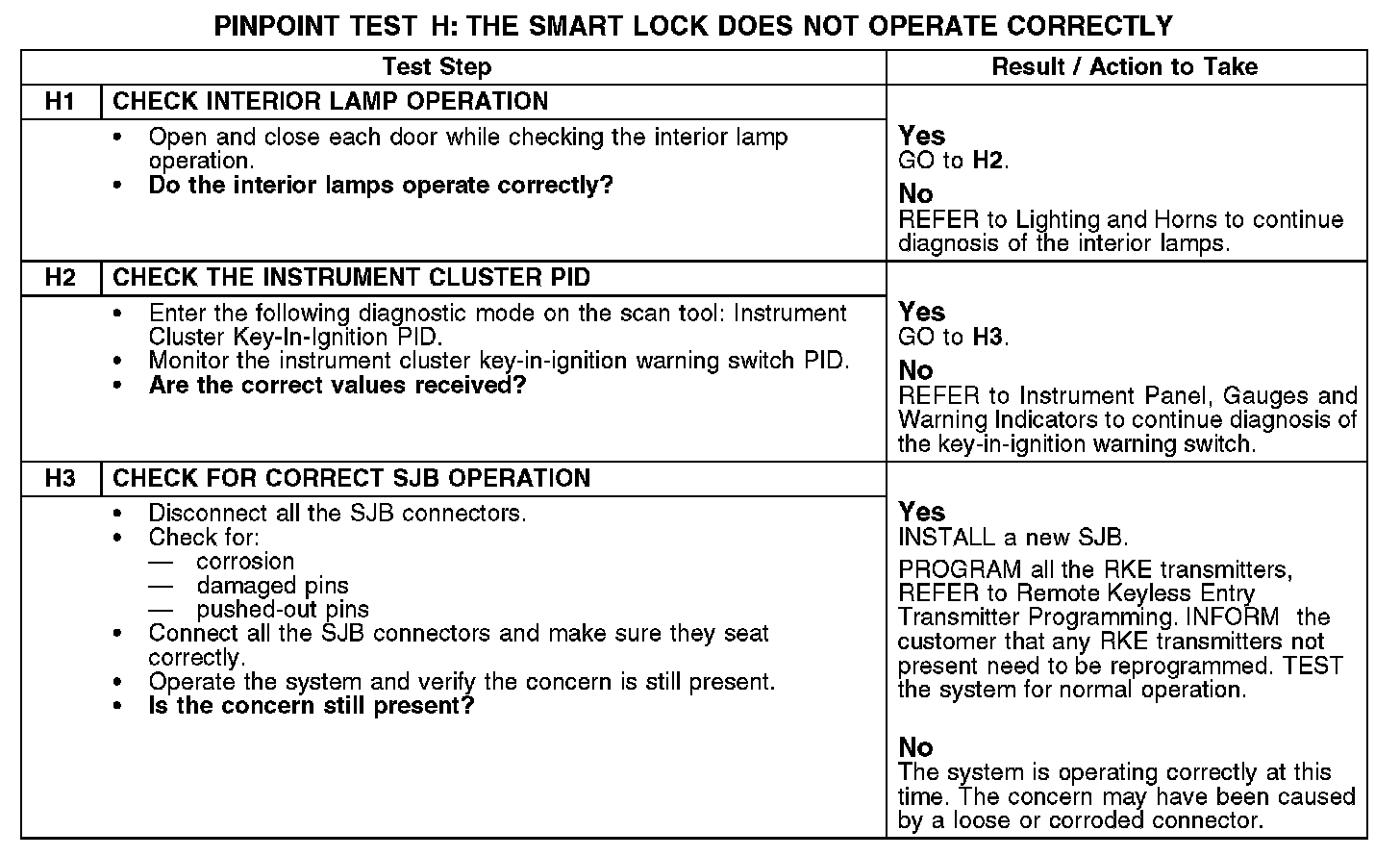PINPOINT TEST H: THE SMART LOCK DOES NOT OPERATE CORRECTLYH1-H3: