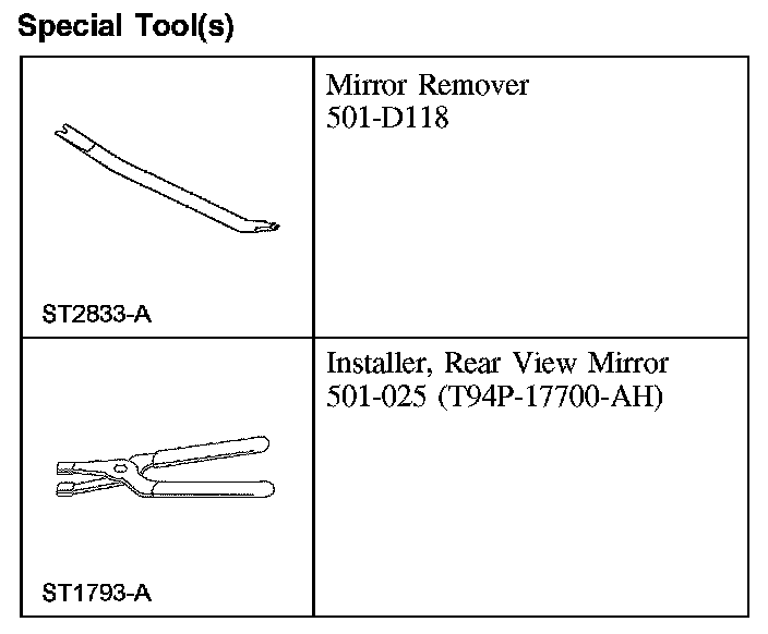 INTERIOR REAR VIEW MIRRORSpecial Tool(S):