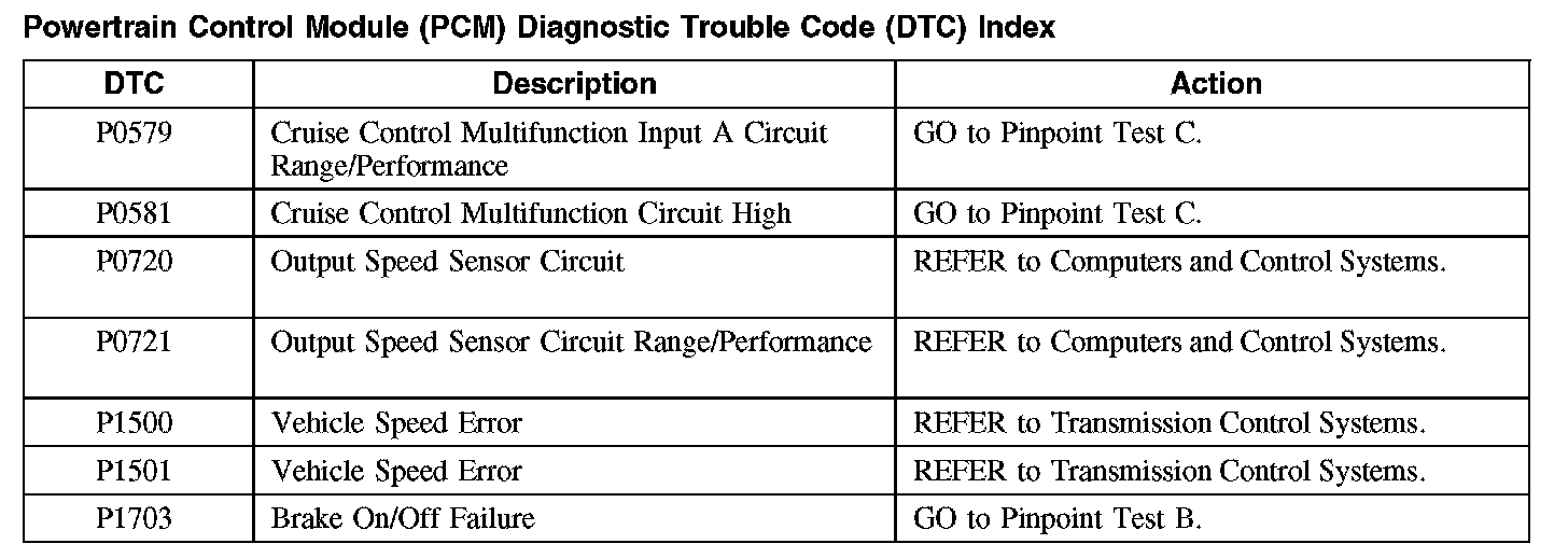 Powertrain Control Module (PCM) Diagnostic Trouble Code (DTC) Index