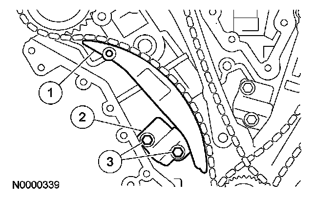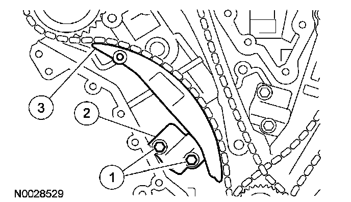 9. Install the LH timing chain tensioner arm and the LH timing chain tensioner.