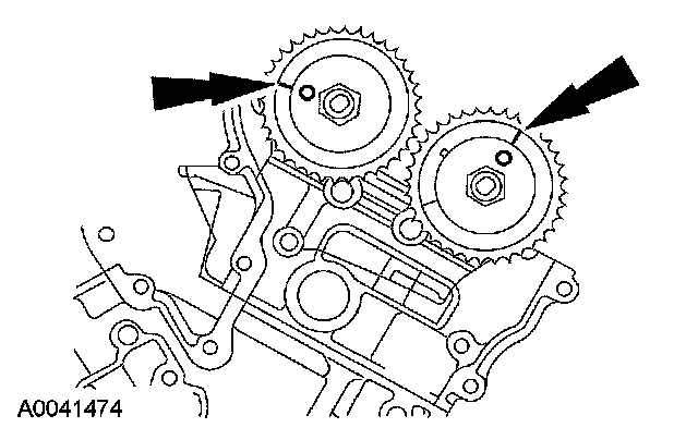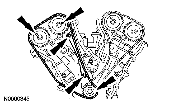 6. If timing marks in the timing chains are not evident, use a permanent-type marker to mark the crankshaft and camshaft timing marks on the LH and RH timing chains.