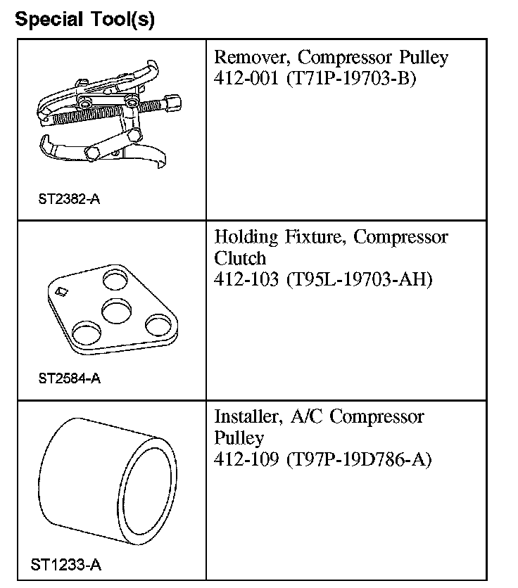 1. NOTE: The A/C clutch components should be reused unless obvious signs of damage are found. If excessive grooving is found, a new A/C clutch disc and hub and a new A/C compressor pulley must be installed together. Otherwise, each component can be installed individually where needed.