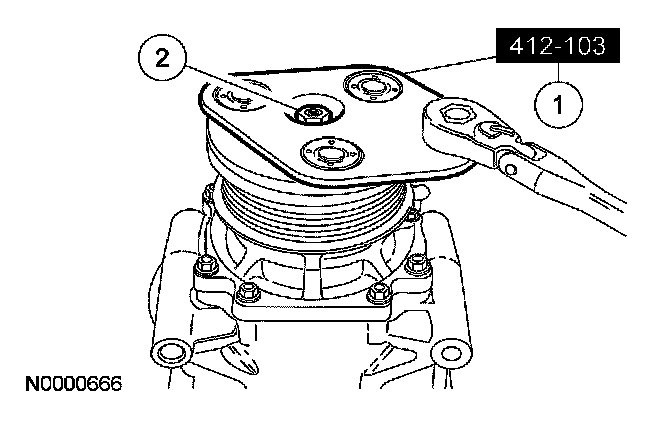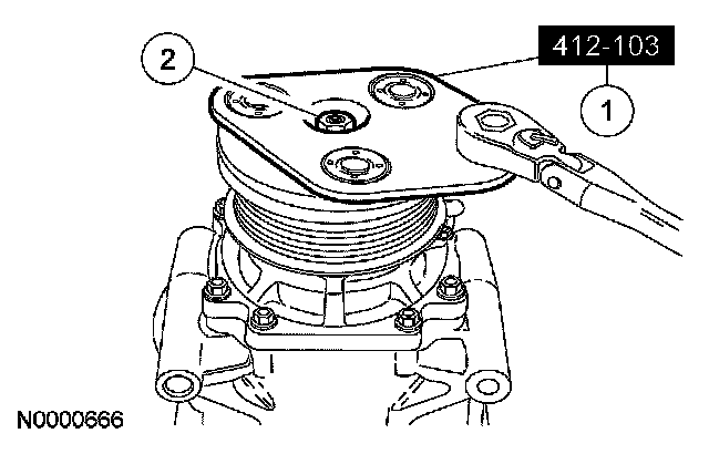 5. CAUTION: Do not use air tools. Damage to the A/C compressor pulley may result.