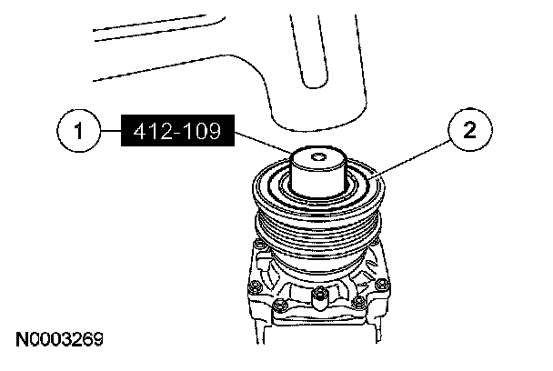 6. NOTE: The A/C compressor pulley is a tight fit on the A/C compressor. It must be correctly aligned during installation.