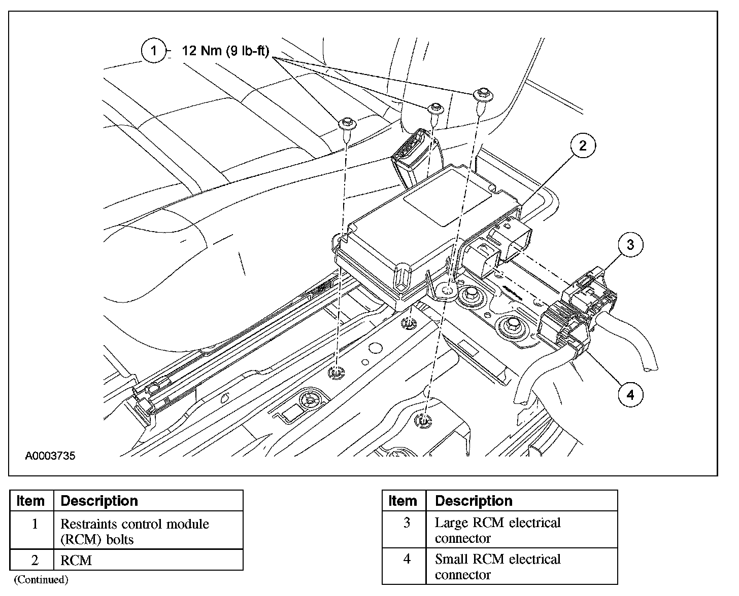 - When installing a new restraints control module (RCM), always make sure the correct RCM is being installed. If an incorrect RCM is installed, erroneous DTCs will result.