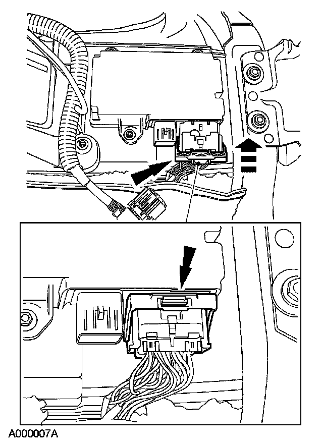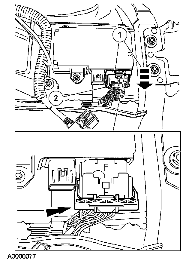 - CAUTION: Do not push the connector to where the lever pivots and seats itself. Light pressure is needed to get the connector into position on the RCM before using the lever to fully seat the connector.
