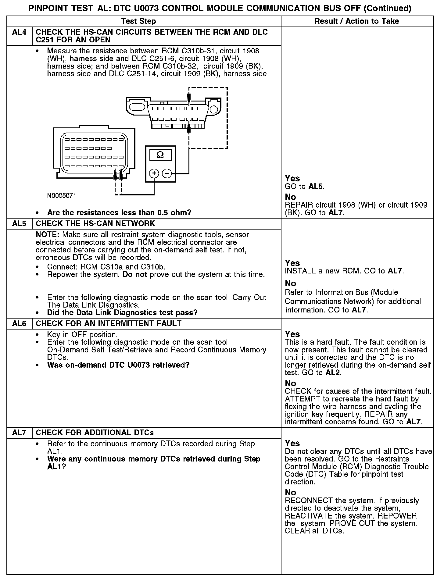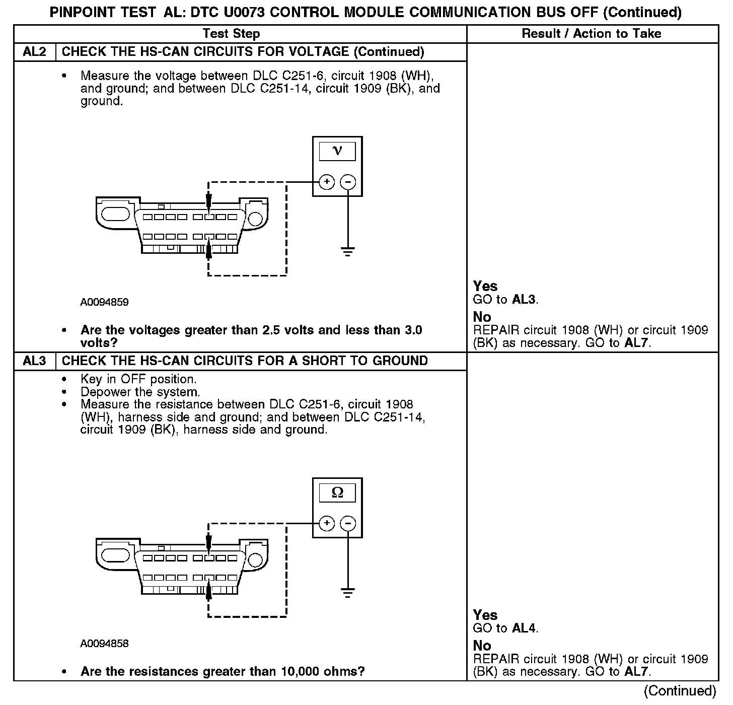 Tests AL: DTC U0073 - Control Module Communication Bus Off