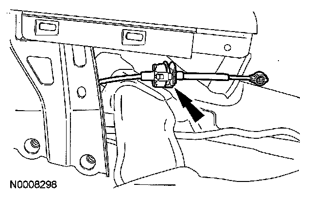 8. Pull the selector lever cable toward the front of the vehicle, and position the cable over the top of the rear floor heat duct.
