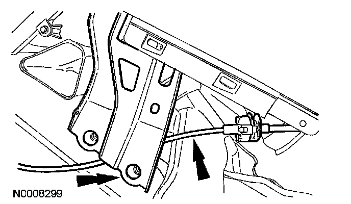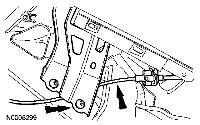 18. From inside of the vehicle, pull the selector lever cable through the bulkhead and remove from the vehicle.