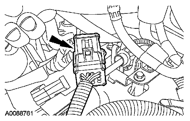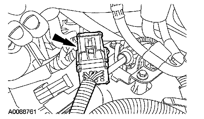 5. Depress the tab on the selector lever cable and lift up on the selector lever cable to remove it from the housing.