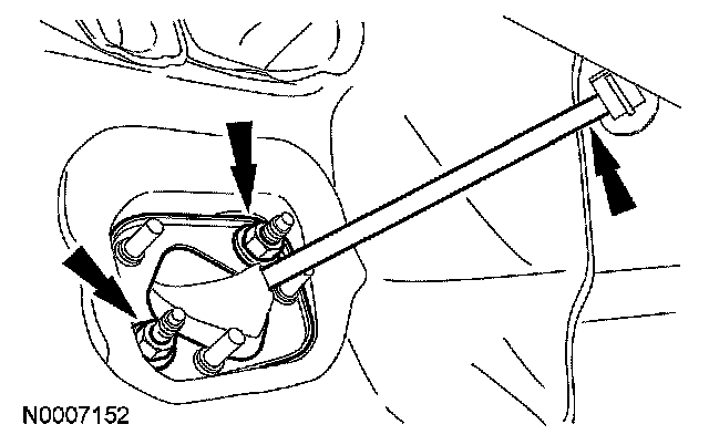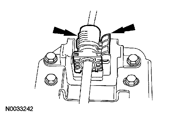 12. CAUTION: Do not force the selector lever cable end onto the manual control lever, damage to the lever will occur.